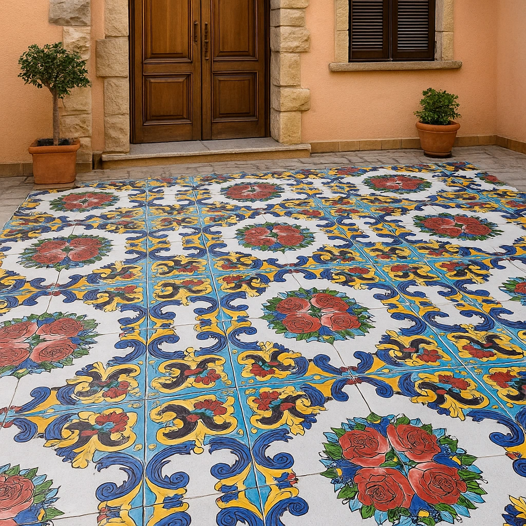 این کاشی سنتی با طرح گلهای رز و رنگهای زندهی قرمز، آبی و زرد، انتخابی زیبا برای دیوارهای داخلی، حیاطهای سنتی و فضاهای کلاسیک است.