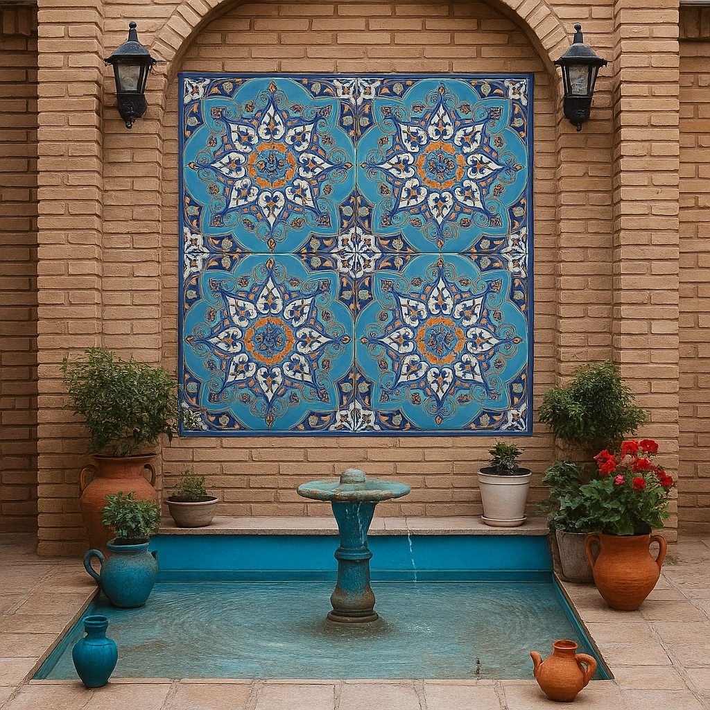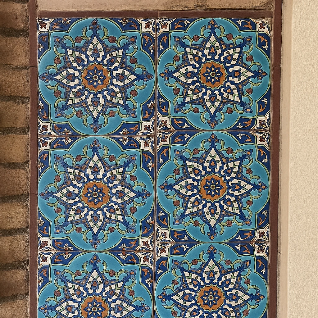 نقوش متقارن و هندسی آن، یادآور تزئینات مساجد و بناهای تاریخی ایران است که با دقت و ظرافت خاصی اجرا می‌شدند. این هماهنگی رنگ و فرم باعث شده تا این کاشی علاوه بر زیبایی، حس نظم و تعادل را نیز در محیط القا کند.